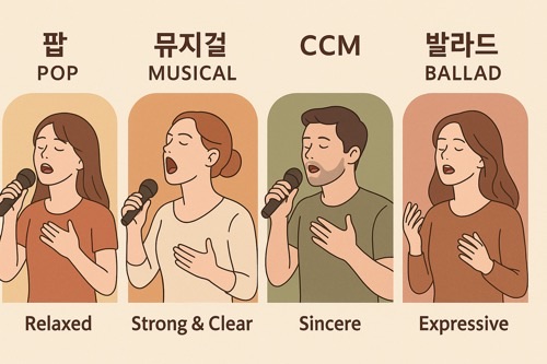 노래를 잘 부른다는 것은 단순히 음정을 정확히 맞추는 것만을 의미하지 않습니다. 각 장르마다 어울리는 발성과 분위기가 다르기 때문에, 같은 목소리라도 어떤 방식으로 소리를 내느냐에 따라 완전히 다른 느낌을 줄 수 있습니다. 오늘은 대중적으로 많이 접할 수 있는 몇 가지 장르를 중심으로 발성의 차이를 살펴보고, 어떻게 연습하면 좋을지 이야기해 보겠습니다.